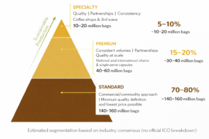Ahogy a fenti ábrán látható becsült adatok is mutatják, a világ kávéfogyasztásának körülbelül 70–80%-át a kommersz (commercial) minőségű kávék teszik ki. Ebbe a kategóriába tartozik az instant kávé, az automatákban használt kávé, valamint a boltokban kapható olcsóbb őrölt és kapszulás termékek.