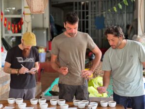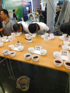 Ezt követi a minták pörkölése, standardizált, light-medium (világos–közepes), úgynevezett cupping pörkölési szinten, majd a cupping (kóstolás). A cuppingot a szervezetek által képzett és minősített kóstolók végzik szabványos protokoll szerint.