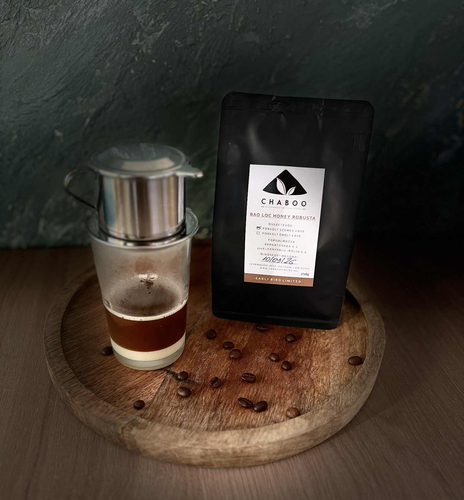 Egy igazi ütős High Quality Robusta, ami minőségi besorolásban kicsivel van csak lejjebb, mint a Fine. A feldolgozás nem Natural, hanem Honey, innen is jön a név. Ilyenkor a Natural feldolgozással ellentétben, nem a teljes gyümölcshúst hagyják meg a kávészemeken, hanem csak egy vékonyabb réteget, amit magas cukortatartalma és állaga miatt hívnak egyszerűen Honey-nak. Ez a kávé kevésbé gyümölcsös, karakteresebb Robusta, az intenzív csokoládé mellett, mogyoró és karamell jegyekkel, bolondítja meg az érzékeket. Presszó kávénak tökéletes, de a nagy kedvenc klasszikus vietnámi Phin csepegtetős technikával készült Ca Phe Sua (Da) (sűrített tejes jegeskávé) egyből mosolyra fakaszt mindenkit. A Cà Phê Trứng (Egg Coffee) igazi kávés desszert belőle, Kézműves, medium-dark (Bécsi) pörkölésű.